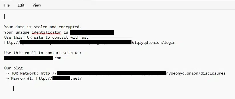 After encryption, Lynx delivers its ransom demand by dropping README.txt notes, changing the desktop wallpaper, and even printing ransom messages on connected printers. The note includes a unique victim ID and directs victims to a Tor negotiation portal or an encrypted email address. Payment is demanded in cryptocurrency, often under a strict deadline, with the threat that stolen data will be leaked if demands go unmet.